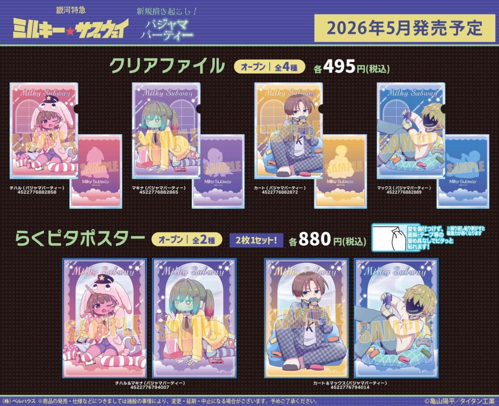 ベルハウスから「銀河特急 ミルキー☆サブウェイ」の新規描き起こし”パジャマパーティー”の新商品が登場!